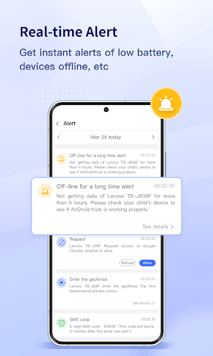 تطبيق AirDroid Parental Control هو تطبيق للحفاظ على أمان أطفالك في العالم المادي وعلى الإنترنت ، ومساعدتهم على بناء عادات رقمية صحية. إنه يتميز بميزات لا تصدق ، مثل المراقبة عن بعد لمحيط جهاز طفلك ، والتسجيل ، والتحكم في وقت الشاشة ، وحظر الألعاب والتطبيقات ، وإشعارات المزامنة والرسائل النصية القصيرة ، وتتبع الموقع ، والتنبيهات الفورية ، وغير ذلك الكثير.